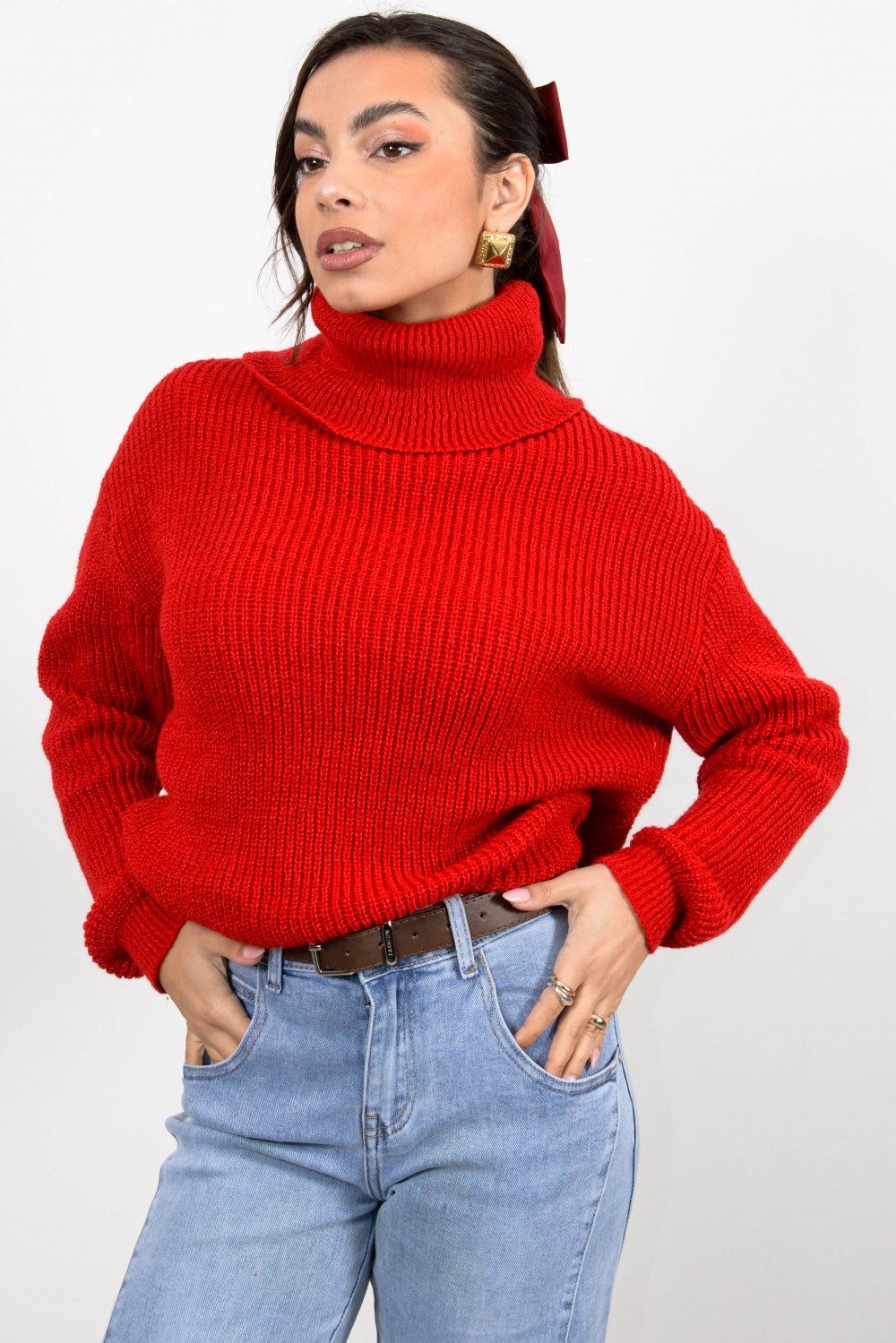 Πλεκτή Μπλούζα Ζιβάγκο - Κόκκινο