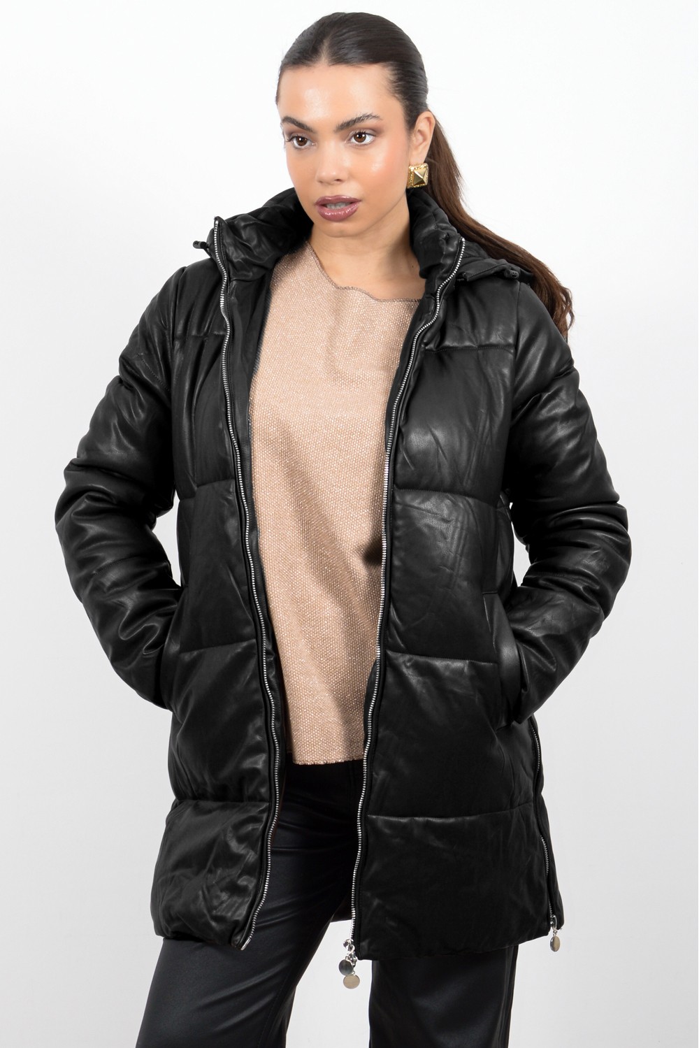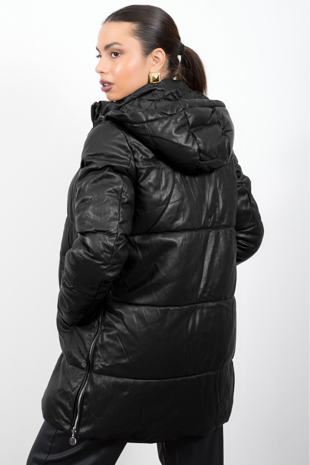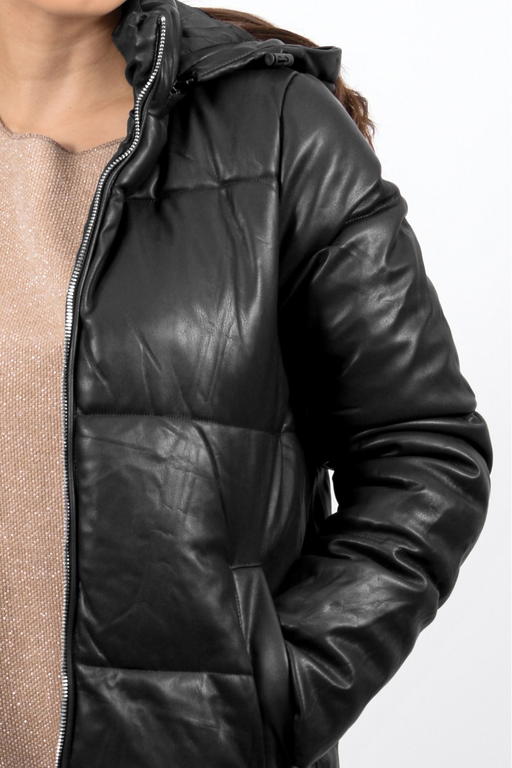 Μπουφάν Puffer Δερματίνη - Μαύρο