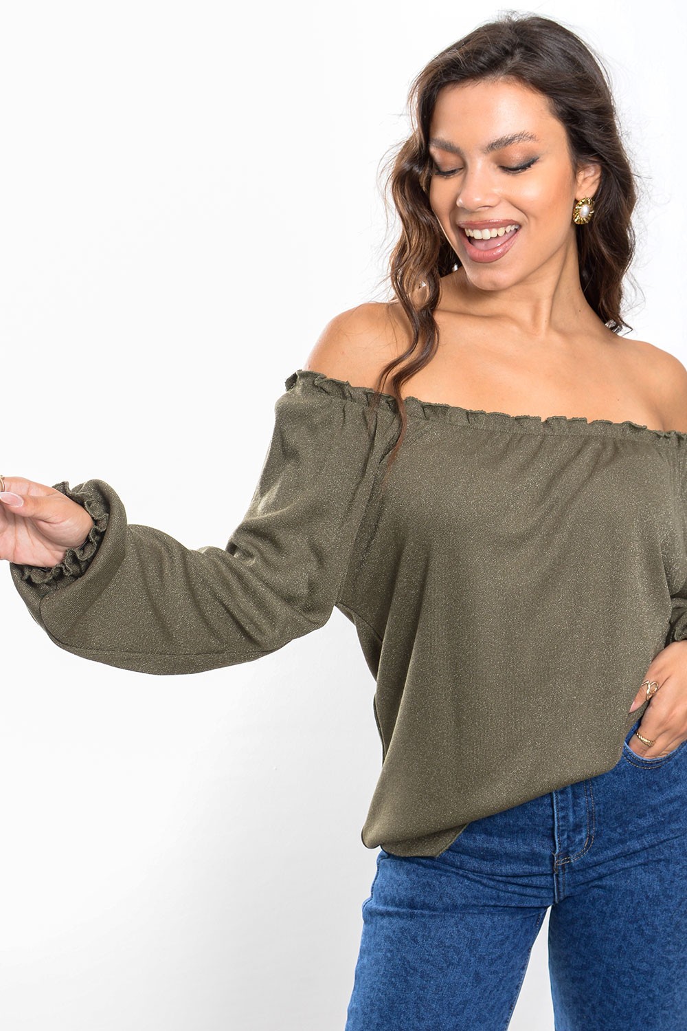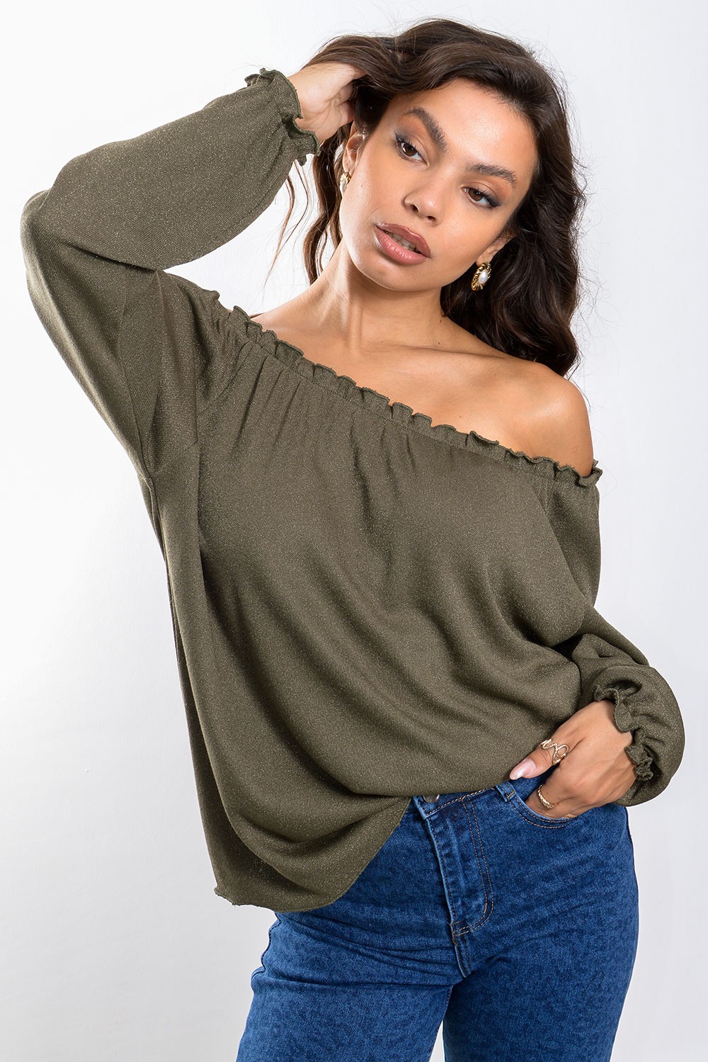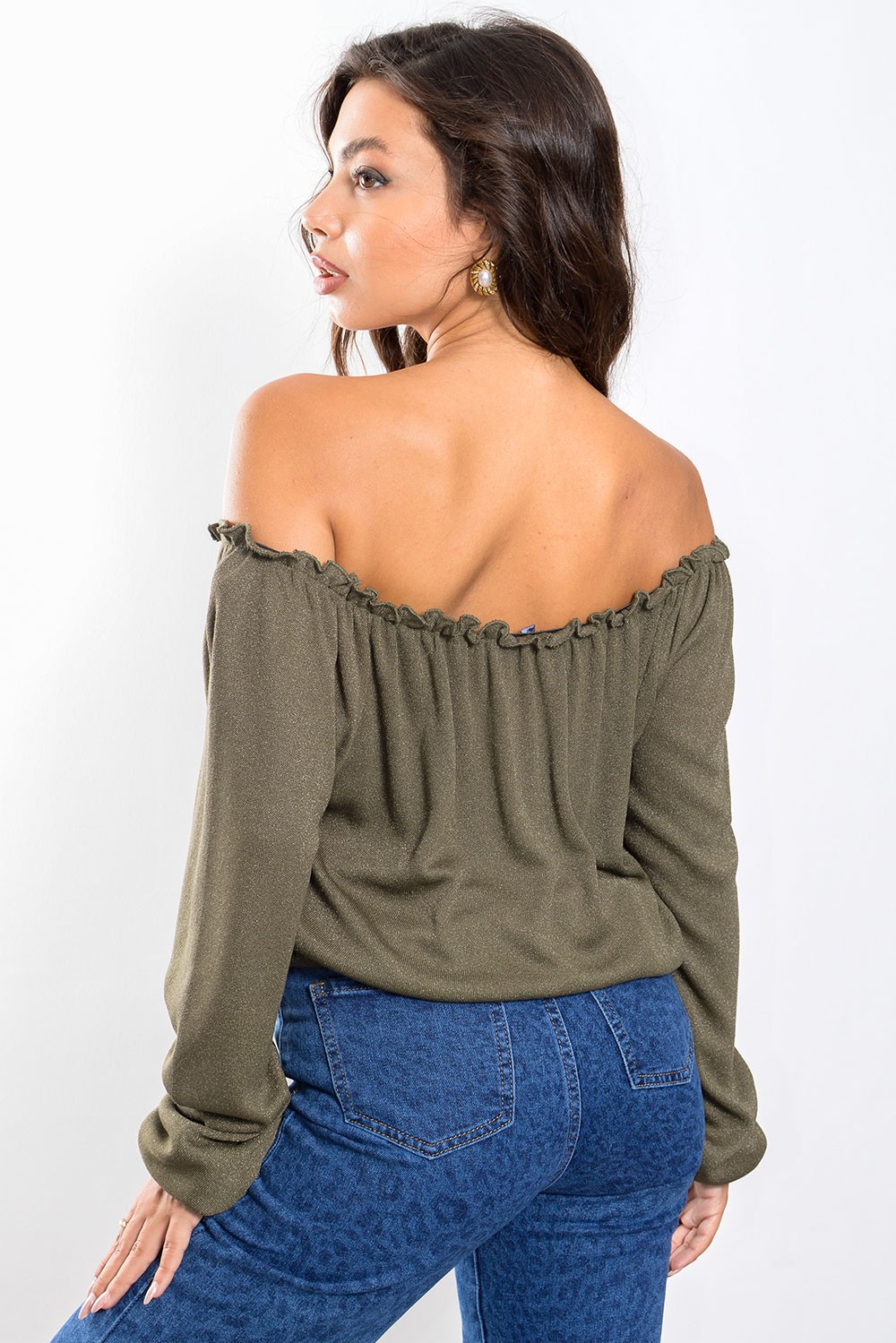 Lurex Off Shoulder Blouse - Khaki