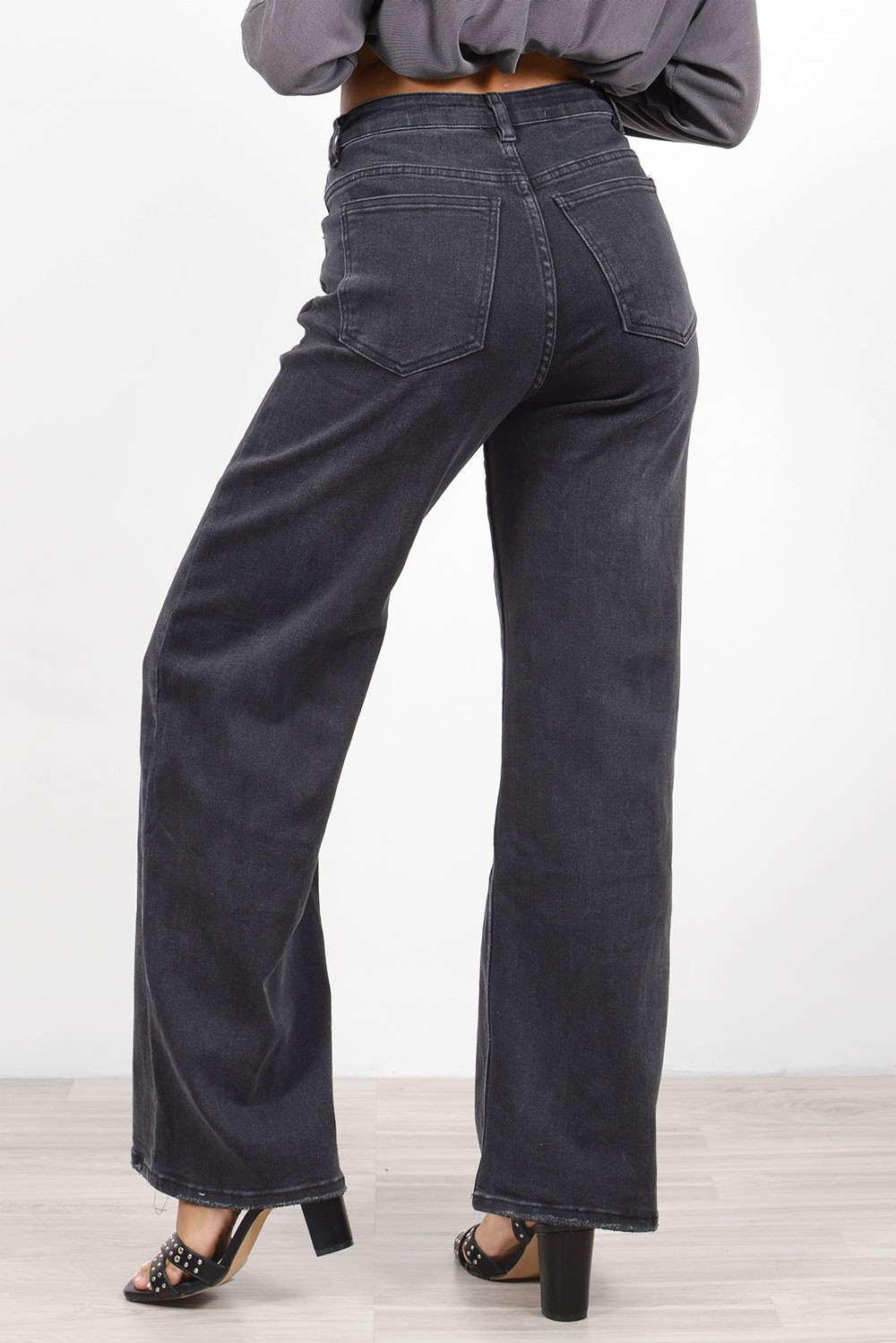 Wide Jeans Asymmetric Waist - Black